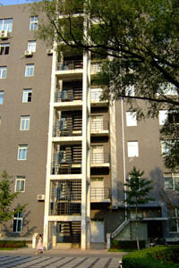 Am ersten Tag seines Aufenthalts in Peking fuhr mein Mann zu dem Ort, an dem Bernhard tot aufgefunden worden war und fotografierte eingehend das Gebäude, die Treppe, die Kamera, die Umgebung. Zu dem Bereich, der im Bild unten sichtbar ist, kommt man nur durch ein Tor, das von Mitternacht bis 5 Uhr morgens abgeschlossen ist.