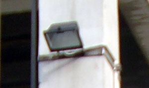 Hier die beiden Lichtquellen vergrößert, links der Strahler an der Treppe, rechts der Strahler mit der bekannten Kamera darüber: